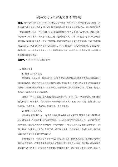 浅谈文化因素对英文翻译的影响 百度文库